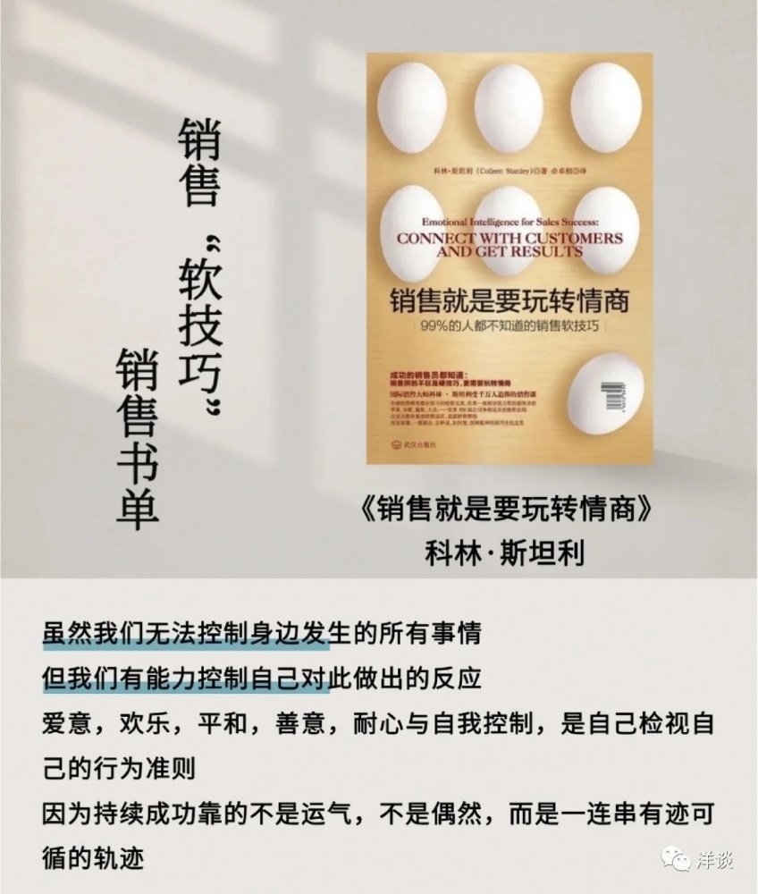 前段時(shí)間幾個(gè)同事來找我傾訴,說客戶的溝通該做的我都做了,最后怎么客戶不理我了?我們一起分析原因,商量對(duì)策。后來我把大家遇到的問題進(jìn)行了歸納總結(jié),準(zhǔn)備分析探討一個(gè)主題:為什么客戶不理我。在充實(shí)材料的時(shí)候,我發(fā)現(xiàn)了一本好書,它從問題的本質(zhì)、理論的依據(jù)以及實(shí)操的維度解答了大家的困惑。今天和大家分享這本書的精髓。書名叫作《銷售就是要玩轉(zhuǎn)情商》,它的副標(biāo)題是“99%的人都不知道的銷售軟技巧”,在博雅、思文書屋都有賣。