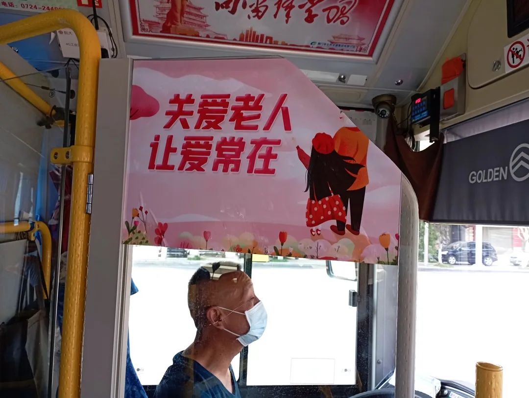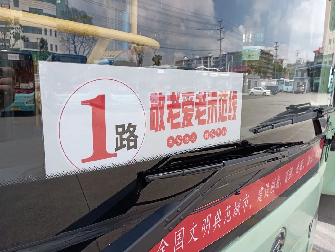 作為公司首條公交“敬老示范線”,1路車輛上的許多細節(jié),都體現(xiàn)著對老年人的關(guān)懷。車廂內(nèi),駕駛室門、座位間靠背都貼有尊老敬老的標語,宣傳敬老文明思想,營造和諧溫馨氛。