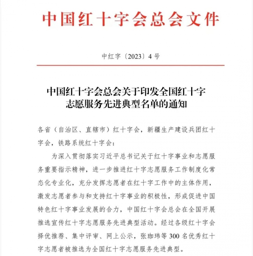“全國紅十字志愿服務(wù)先進典型”