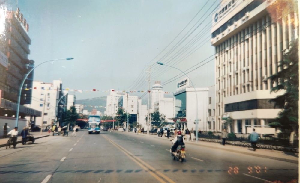 ▲00年代初,荊門市象山一路街景。8路雙層觀光巴士行駛在路上,沿路引來(lái)市民觀望,想要乘車體驗(yàn)。當(dāng)年二層車頭座位最搶手。