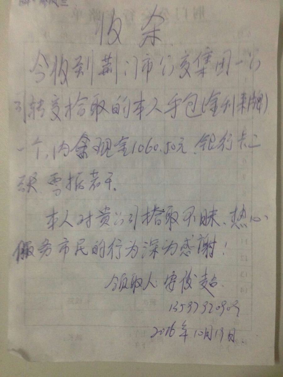 外環(huán)154駕駛員廖鳳蘭車內(nèi)拾到錢包一個,交到公司后,失主聯(lián)系核實(shí)后領(lǐng)走。